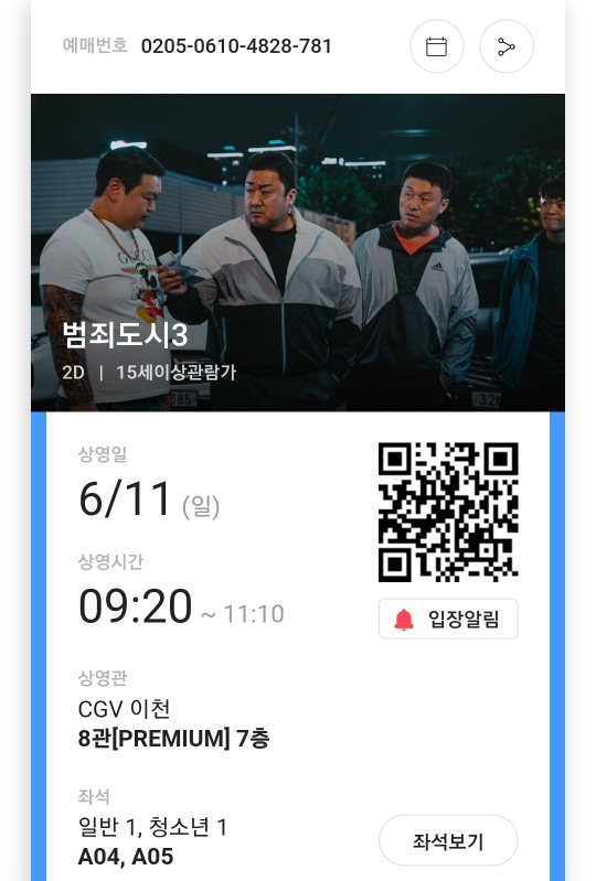 할인카드가 CGV 어플이나 현장 발권이라 전일 저녁에 예매를 했습니다.